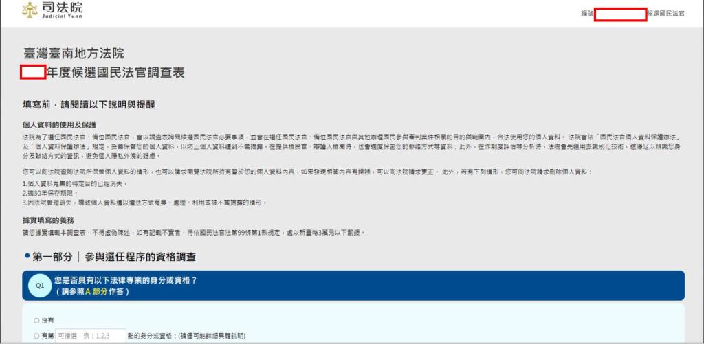候選國民法官調查表之線上填載