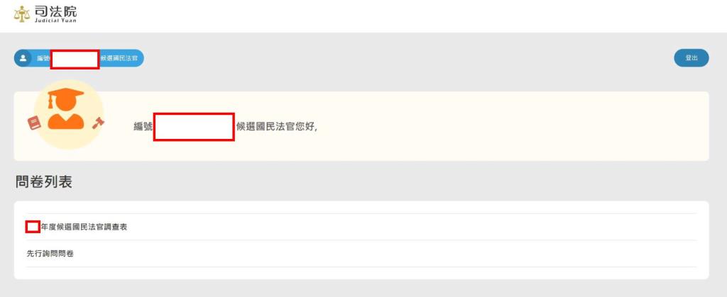 E. 進入成功後的頁面(圖7),點選候選國民法官調查表,即可開始填寫(圖8)。